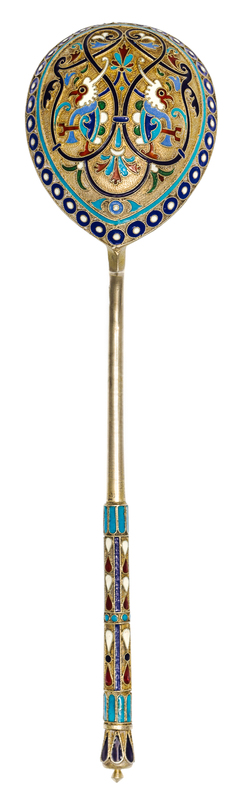 A Russian Silver and Enamel Spoon