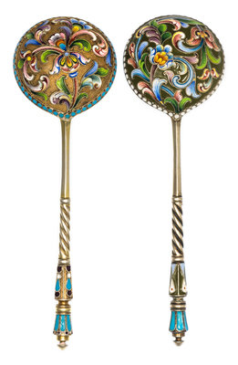 Two Russian Silver-Gilt and Enamel Spoons