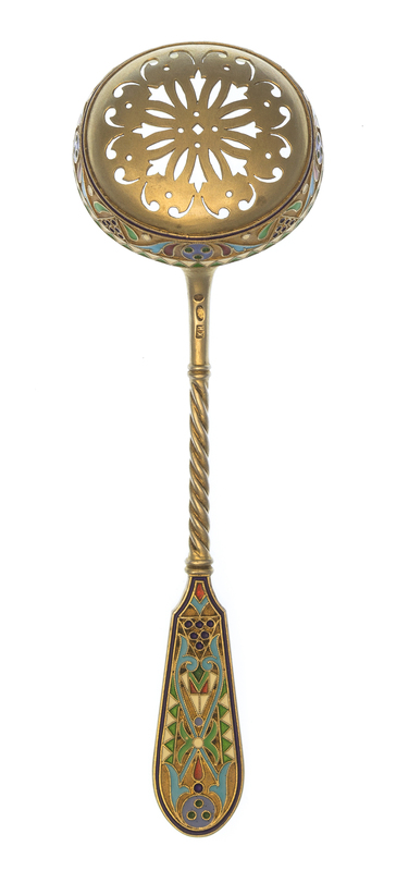 A Russian Silver-Gilt and Enamel Tea Strainer
