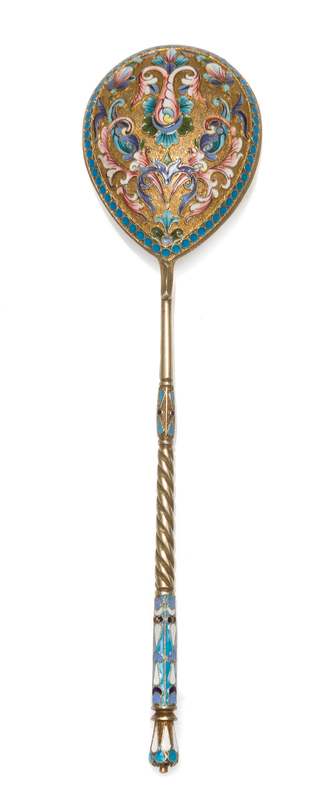A Russian Silver-Gilt and Enamel Spoon