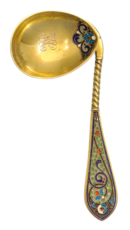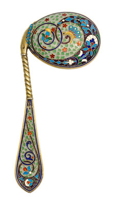 A Russian Silver-Gilt and Enamel Caddy Spoon