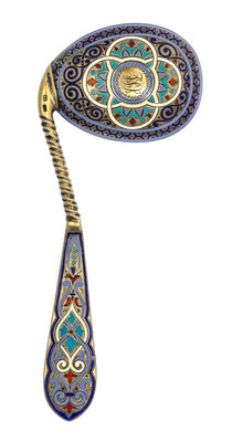 A Russian Silver-Gilt and Enamel Caddy Spoon