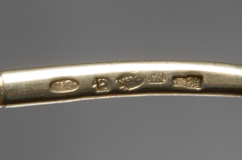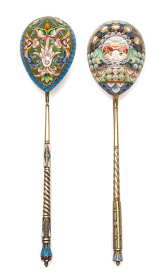 each having an enameled finial surmounting a twist and enamel decorated stem.