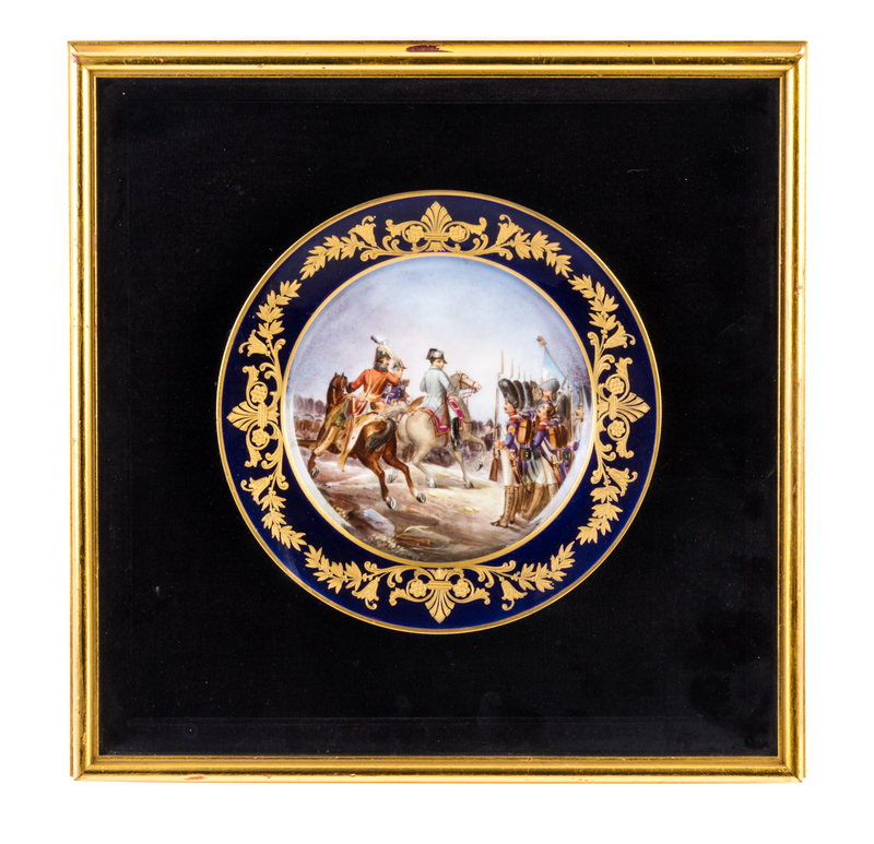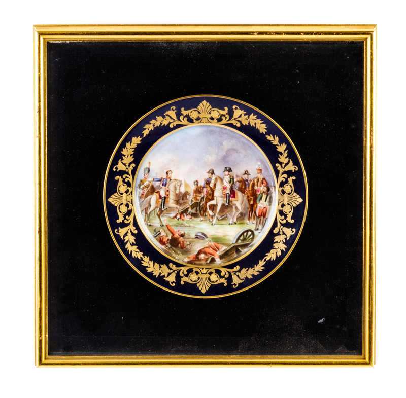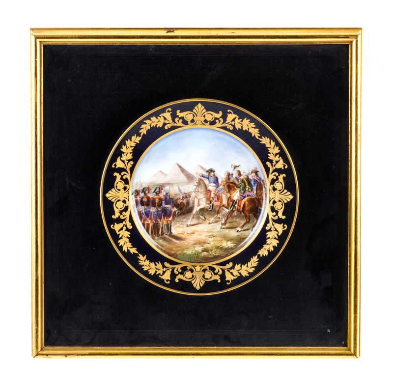each centered with a scene of Napoleon reviewing his troops signed Faraguet, mounted in a giltwood frame.