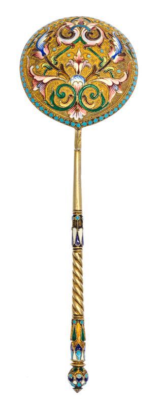the underside of the bowl with polychrome floral and foliate enamels on a matte gilt ground.