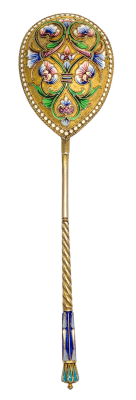 A Russian Silver-Gilt and Enamel Serving Spoon
