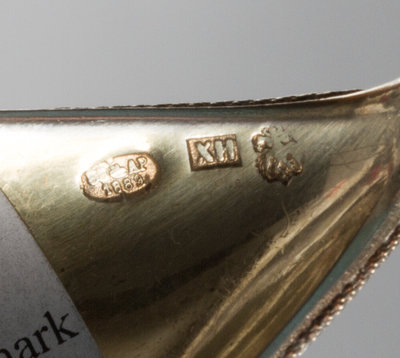 Mark of Ivan Khlebnikov with Imperial warrant, assay mark of A. Romanov, Moscow, 1889