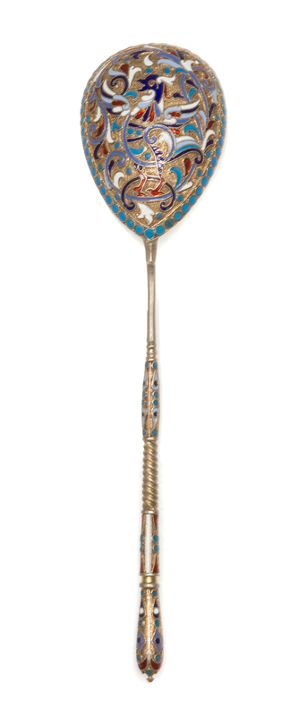 A Russian Silver-Gilt and Enamel Spoon