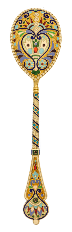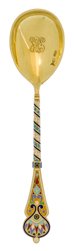 A Russian Enameled Silver-Gilt Teaspoon