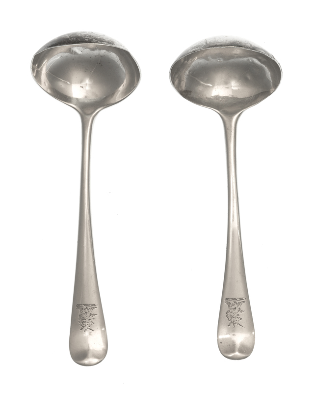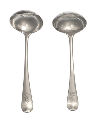 A Matched Pair of George II Silver Sauce Ladles