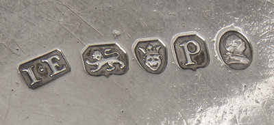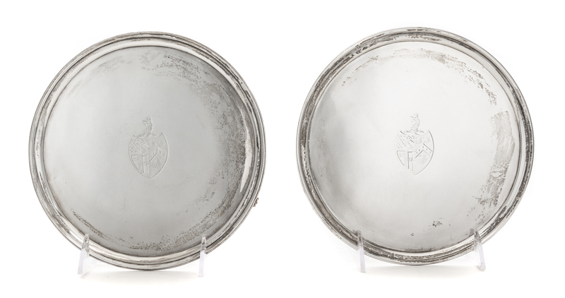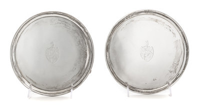 each centered by an engraved armorial shield surmounted by dragon head erased and raised on three feet.