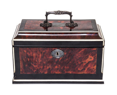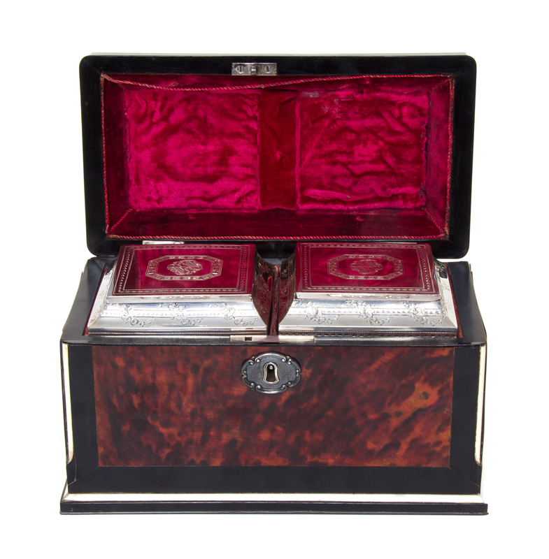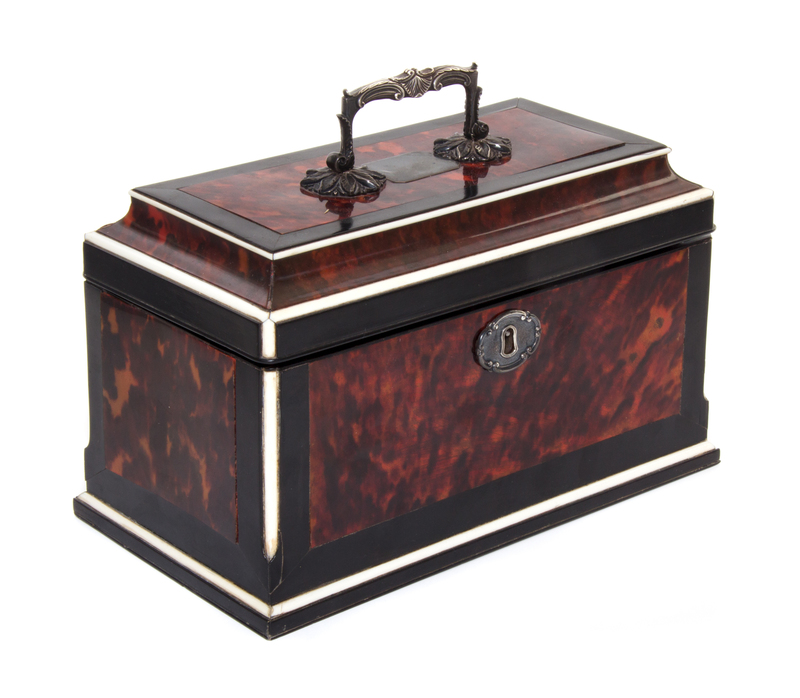 A George III Silver and Tortoise Shell Mounted Ebony Tea Caddy