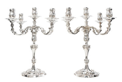 A Pair of Elizabeth II Silver Five-Light Candelabra