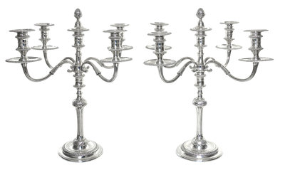 A Pair Elizabeth II Silver Five-Light Candelabra