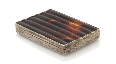 An Austrian Silver and Tortoise-Shell Cigarette Box