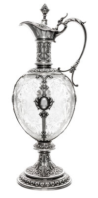 A German Silver and Etched Glass Wine Ewer