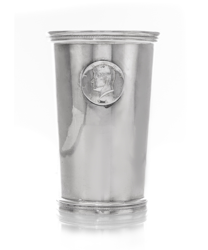 tapering, applied with a 1964 American Silver Kennedy Half-Dollar to one side.