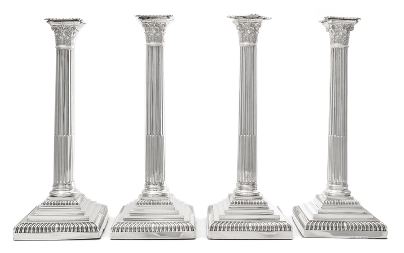 A Set of Four English Silver-Plate Candlesticks