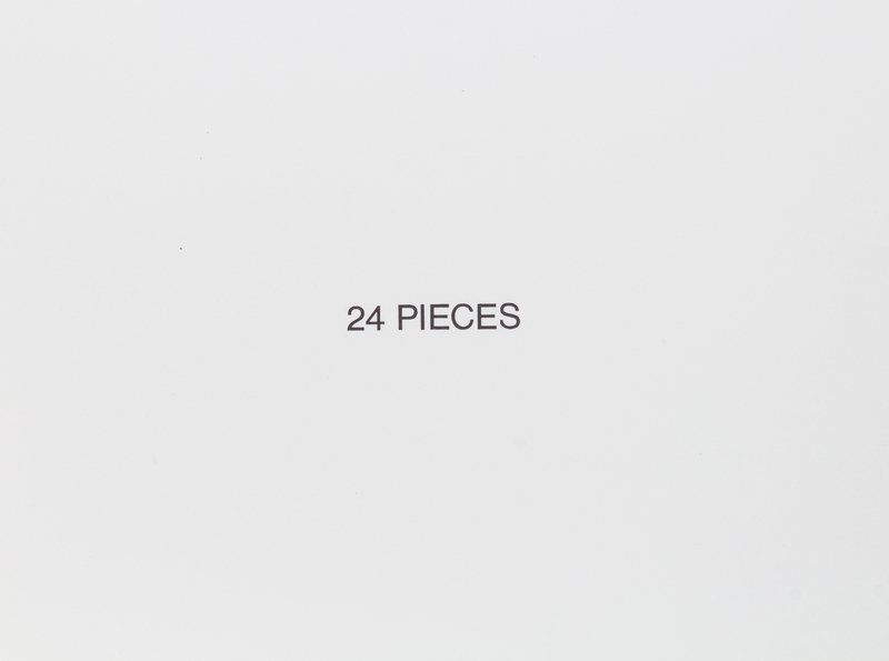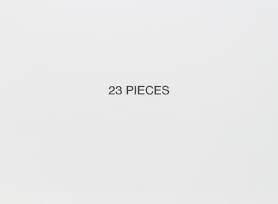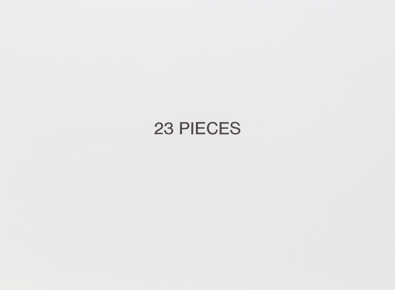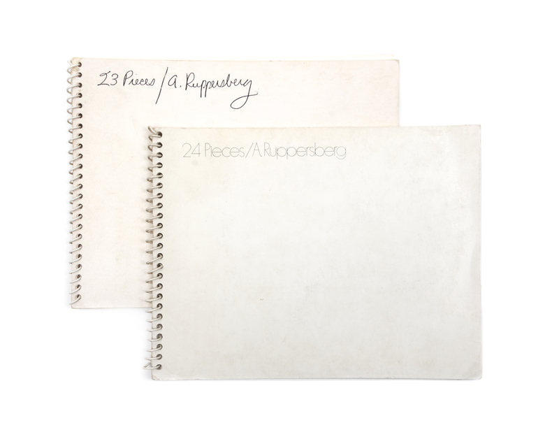 23 Pieces [and] 24 Pieces. [Los Angeles]: Sunday Quality, [1968-1969, 1970].2 vols. Oblong 12mo, spiral-bound printed wrappers, title of 23 Pieces supplied in mss; other printed. Featuring photographs by Gary Krueger of public settings in Los Angeles, juxtaposing interior scenes without exterior outdoor ones, including, in 23 Pieces, institutional interiors and, in 24 Pieces, motel and hotel rooms. Both first editions.