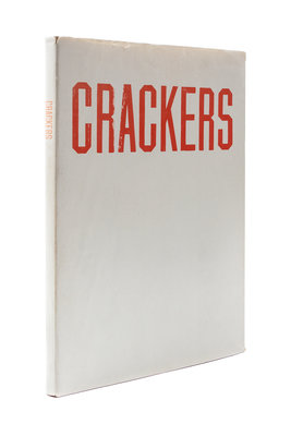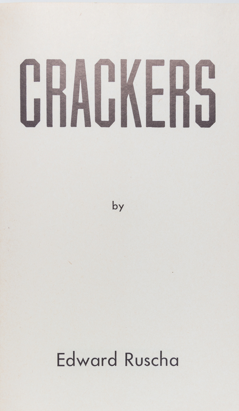 Crackers. Hollywood, CA: Heavy Industries, 1969.Thin 8vo, original card wrappers, white dust jacket with red lettering. First edition. Illustrated with reproductions of Ruscha's photographs illustrating a story by Mason Williams entitled "How to Derive the Maximum Enjoyment from Crackers. A few nicks to the top edge of the jacket.