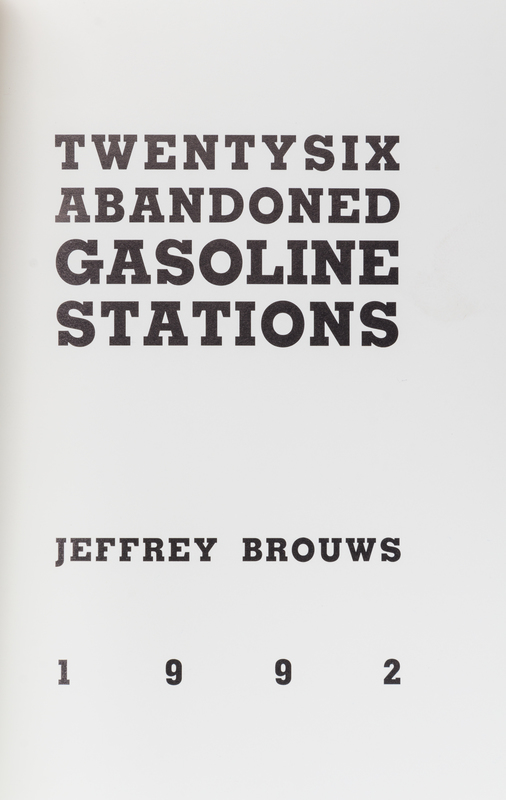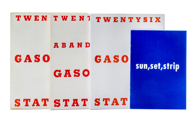 Twentysix Gasoline Stations. Alhambra, CA: The Cunningham Press, (1969).12mo, original white paper wraps lettered in red. Third edition, limited to 3,000 copies. Spine faded.[Together with:] three other works imitating Ruscha's works, including Twentysix Gasoline Stations, by Michalis Pichler (NY: Printed Matter, 2009); Twentysix Abandoned Gasoline Stations, by Jeffrey Brouws, limited edition, signed (Santa Barbara, CA: Hand Job Press, 1992); sun, set, strip, by Stefan Eberstadt (Munich: self published, 1997). (4 total)