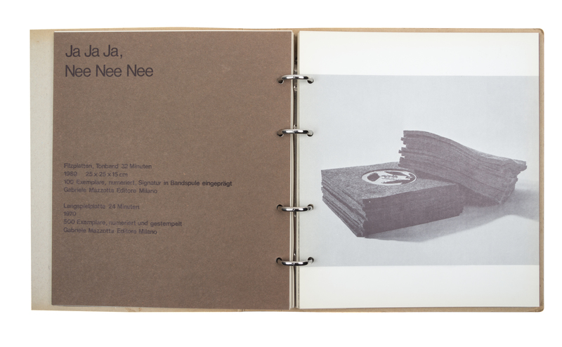 Multiples + Grafik. Munich: Verlag Schellmann und Kluser, 1971.Square 4to, original spiral binder with printed boards. Limited to 600 copies. Together with a postcard printed on felt, filzpostkarte, circa 1985. Crease to title page of book.