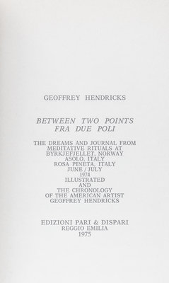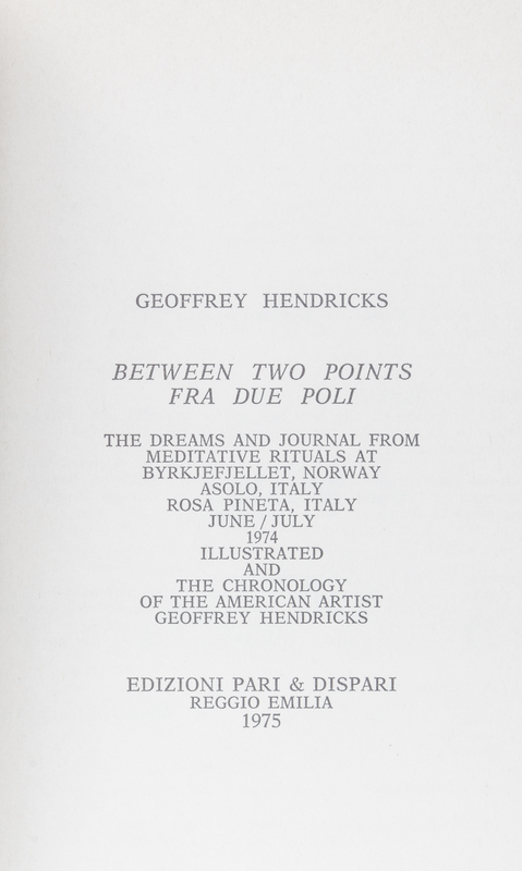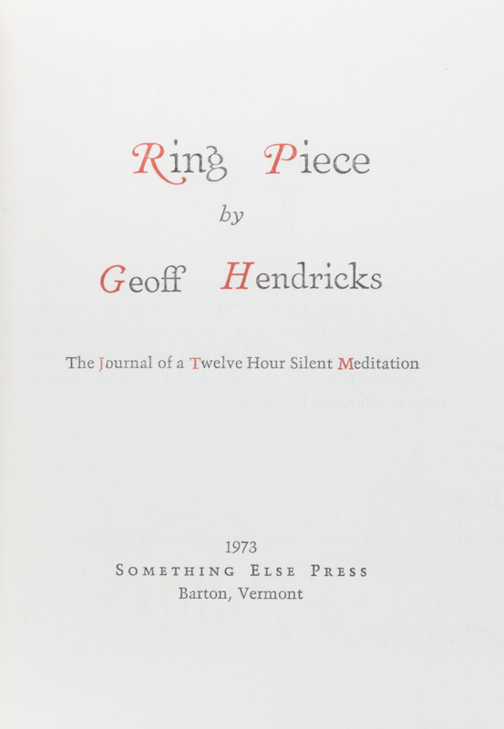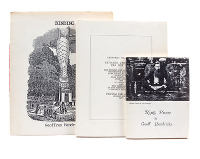A group of three works.Binding. [Chicago:] White Walls, 1987. Limited, 15/50, signed; Between Two Points. Reggio Emilia: Pari & Dispari, 1975; Ring Piece. Barton, Vermont: Something Else Press, 1973.
