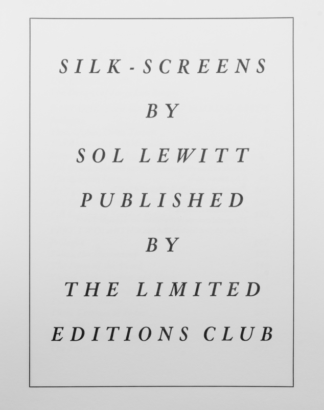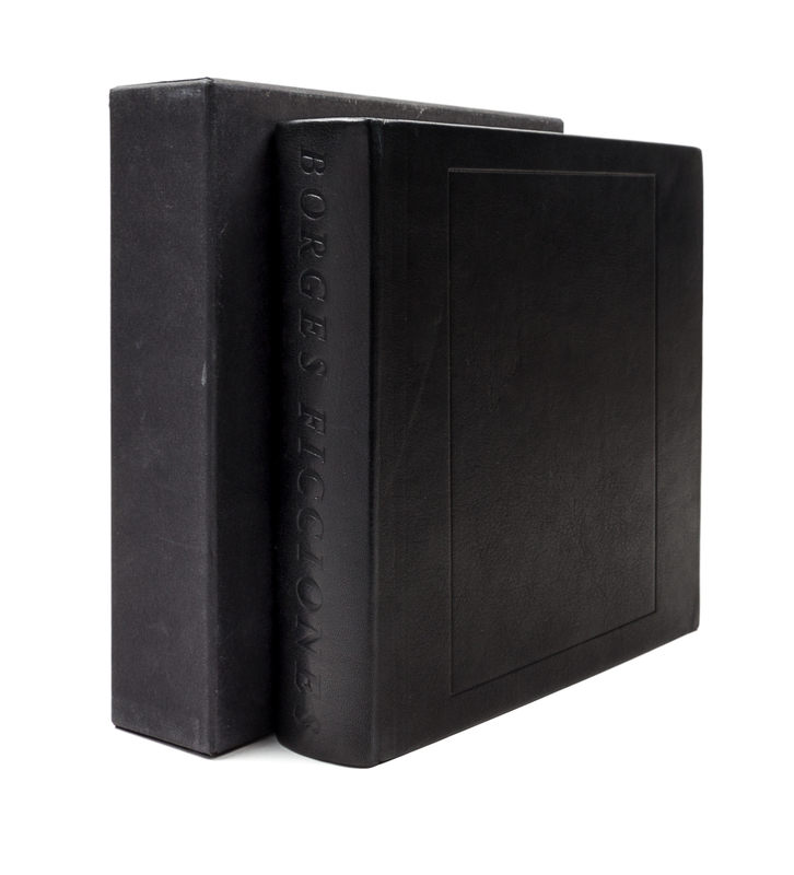 Ficciones. New York: Limited Editions Club, 1984.Square 8vo, bound in full black leather stamped in blind, slipcase. Illustrated with 22 full-page silkscreens by LeWitt. Limited to 1500 copies, of which this is 1,169, signed by LeWitt.