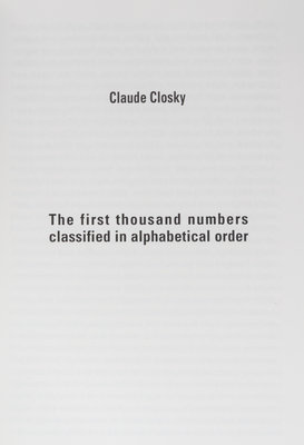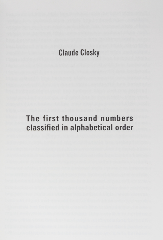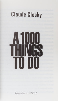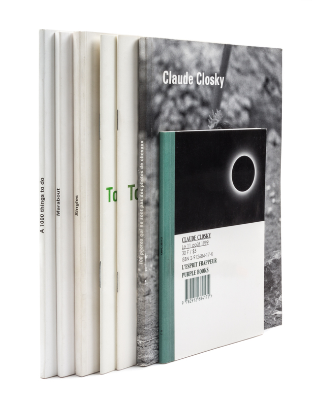 A group of eight works. Le 11 aout 1999, Paris: L'espirit frappeur et Purple Books, 1999. 100 photos qui ne sont pas des photos de chevaux, Paris: Editions de la RN7, 1995. Large 8vo, photo-pictorial wrappers; Marabout, Paris, 1996. Limited to 1000 copies; Singles, Paris, 1995. Limited to 1000 copies; The first thousand numbers classified in alphabetical order, Paris, 1989. Limited to 100 copies; A 1000 things to do, Paris, 1996. Limited to 1000 copies; Tout ce que je peux faire, Paris, 1992. Limited to 500 copies; Tout ce que jue peux etre. Limoges, n.d. Limited to 500 copies.
