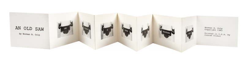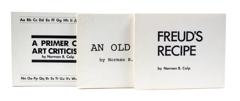 A Primer on Art Criticism [and] Freud's Recipe [and] An Old Saw. New York: Hand & Mind Books, 1983.3 vols. Oblong 16mo, original printed card, two folded accordion style, featuring text and photography. An Old Saw inscribed to Buzz Spector.
