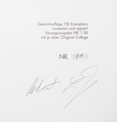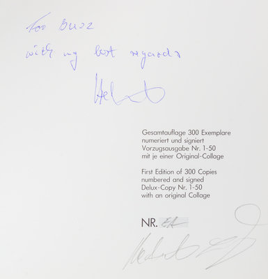 Visual Poetry and Visual Prose. Berlin: Galerie Horst Dietrich, 1987, 1988.2 vols. Oblong 4to, original pentagonal structure with black wraps. Visual Poetry limited to 150, signed, Visual Prose limited to 300, this copy EA, signed and inscribed to Buzz Spector.