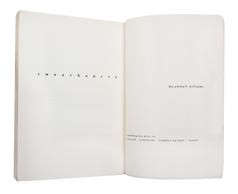 Sweethearts. New York: Something Else Press, 1967.Thick 8vo, illustrated paper wraps. Softcover edition of Williams' erotic poem series, with cover design by Marcel Duchamp.[Together with:] two other books published by the Something Else Press by David Spoerri: The Mythological Travels... (New York, 1970); An Anecdoted Topography of Change (New York, 1966). (3 total)
