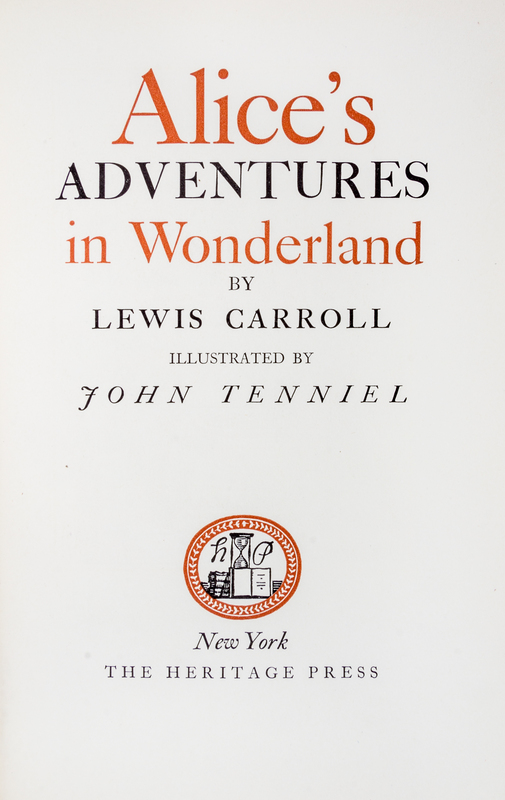Alice's Adventures in Wonderland [and] Through the Looking Glass. New York: Heritage Press, 1941.2 vols. 8vo, bound by Bayntun in full red morocco, a.e.g., original cloth bound at the rear. First Heritage Press edition, profusely illustrated by John Tenniel.