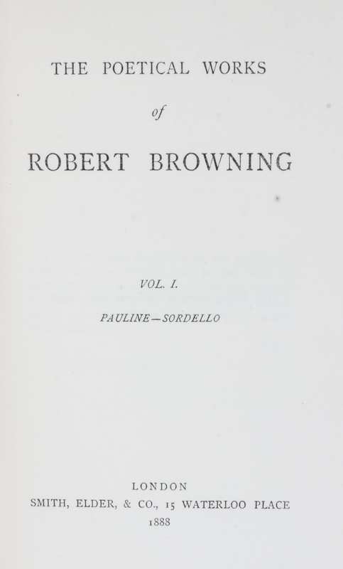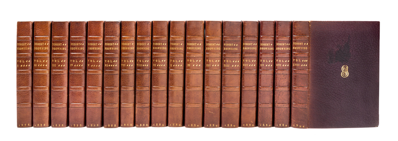 The Poetical Works. London: Smith Elder, 1888-1894.17 vols. 8vo (9 x 6 1/8 inches), bound by Knickerbocker Press for G.P. Putnam's Sons in full deep purple morocco, silk endpapers, gilt turn-ins, t.e.g. One of 250 sets on hand-made paper. Spine faded; some very light foxing.