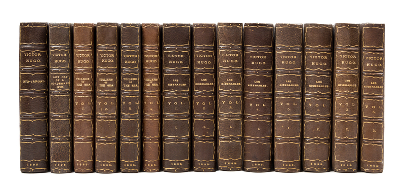 The Novels. Complete and Unabridged. London: H.S. Nichols, 1895.28 vols. 12mo, full dark green morocco, gilt-lettered spines, marbled endpapers, t.e.g. Limited edition, number 50 of 100 sets on Holland paper. Each volume is illustrated with engraved plates, protected with tissue guards. The spines are slightly browned, with very minor shelfwear.