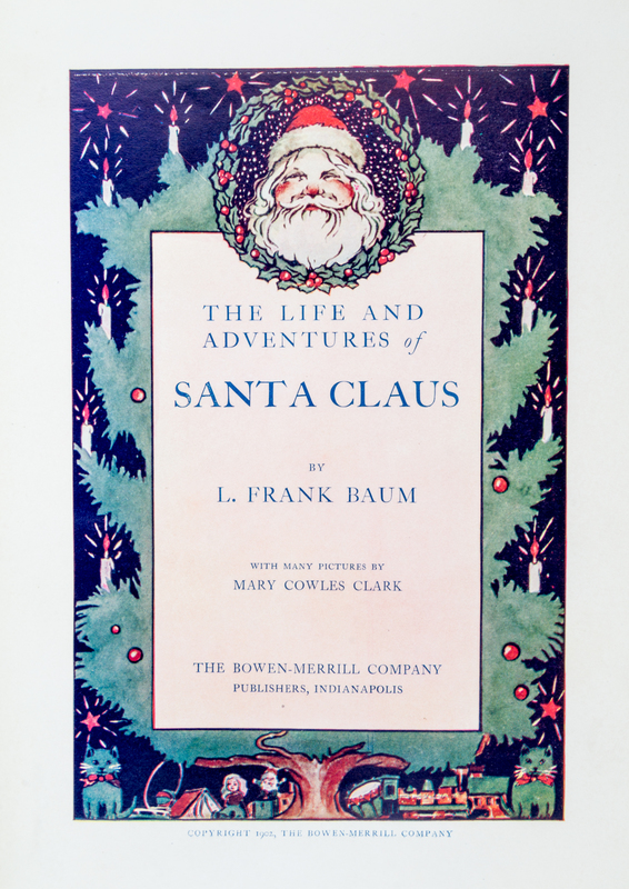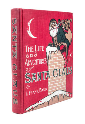 The Life and Adventures of Santa Claus. Indianapolis: The Bowen-Merrill Company, 1902.8vo, original decorative publisher's cloth. First edition. Contains numerous illustrations by Mary Cowles Clark. A few pages are soiled on the edges, and one page has two small tears and creases at the bottom edge. Minor weakening of the inner front hinge. The binding is lightly worn, with one tiny bump, and minor loss to some white lettering/decoration. Previous owner's 1903 gift inscription on a blank endpaper.