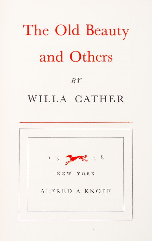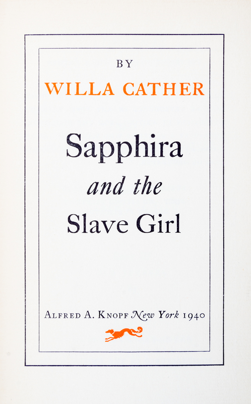 Two first editions, comprising The Old Bauty and Others. New York: Alfred A. Knopf, 1948. 8vo, publisher's orange cloth with black stamped title and decoration, printed dust jacket. First edition; Sapphira and the Slave Girl. New York: Alfred A. Knopf, 1940. 8vo, publisher's green cloth boards, printed dust jacket. First edition.