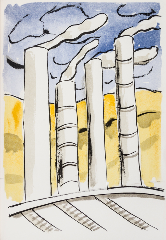 Mes voyages., avec un poem d'Aragon. [Paris: Francais Reunis, 1960].Folio, contents loose as issued in printed folder, imitation wood slipcase and chemise. Complete set of 27 lithographs in color and black and white. Limited to 281 copies, of which this is 234 of 261. Offsetting from some plates.