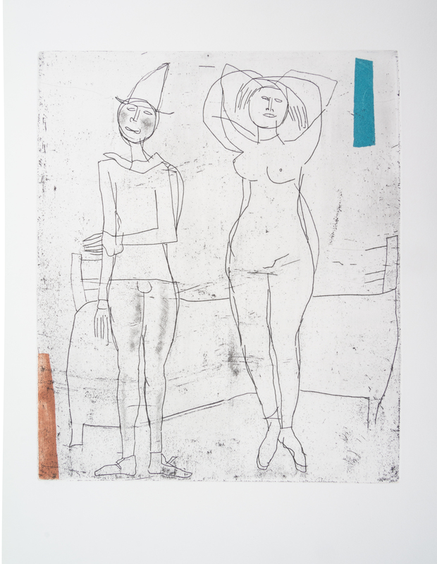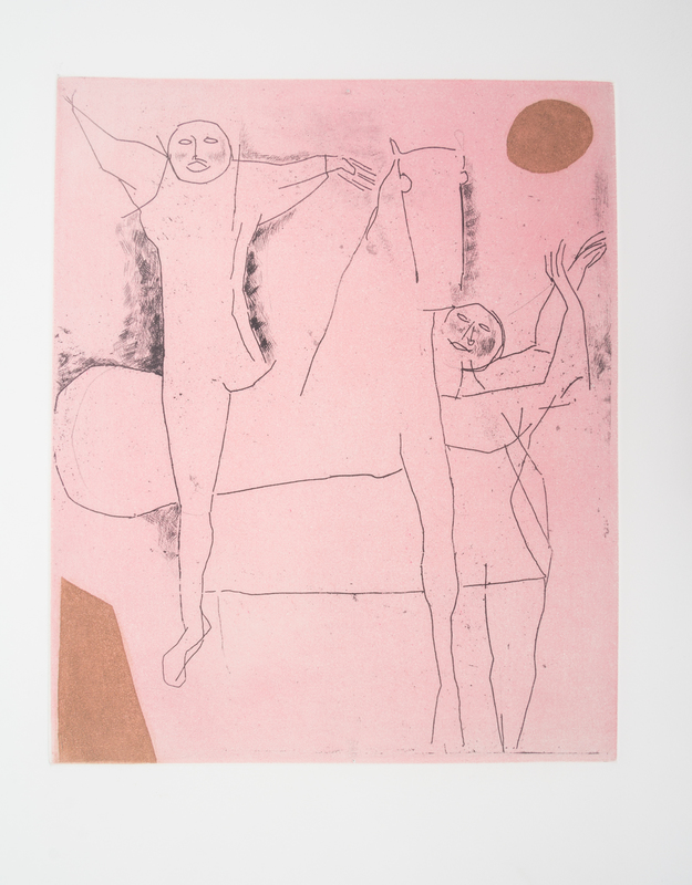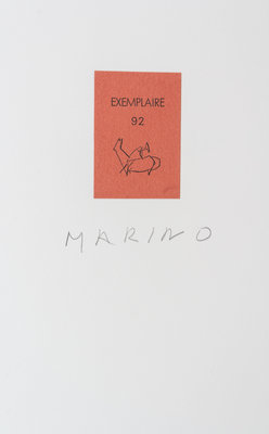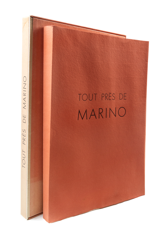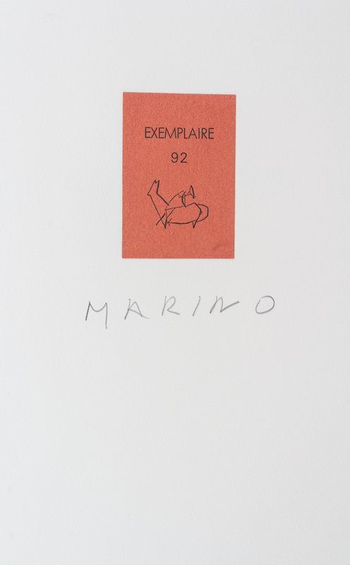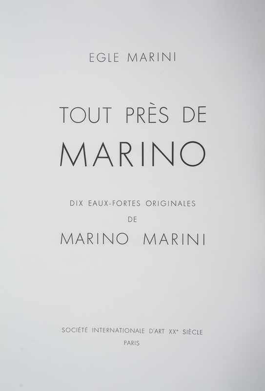 Tout pres de Marino. Paris: Societe Internationale d'Art XXe Siecle, 1971.Folio, contents loose as issued in folder and cloth-backed board clamshell box. Complete set of 10 etchings on Arches. Limited edition, number 92 of 75 copies signed by Marini in pencil.