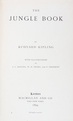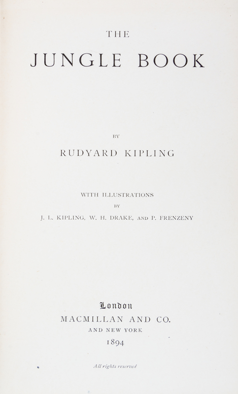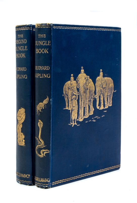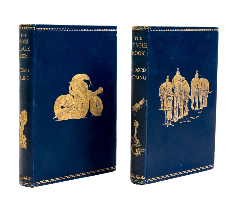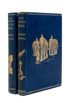 The Jungle Book [and] The Second Jungle Book. London, 1894, 1895.2 vols. 8vo, publisher's blue cloth stamped in gilt, a.e.g. First edition. Light edgewear to boards; boards cocked slightly.