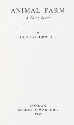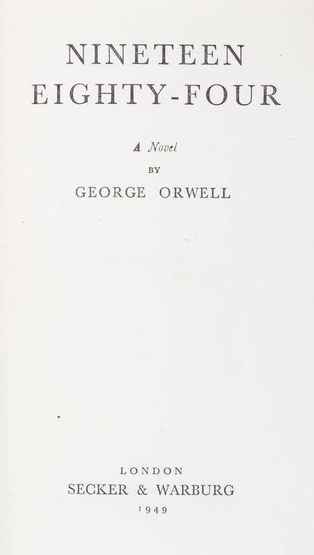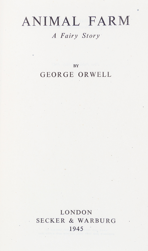 Two first editions, lacking their dust jackets. Nineteen Eighty-Four. London: Secker and Warburg, 1949. First edition, original green cloth, lacking dust jacket. Animal Farm. London: Secker and Warburg, 1945.