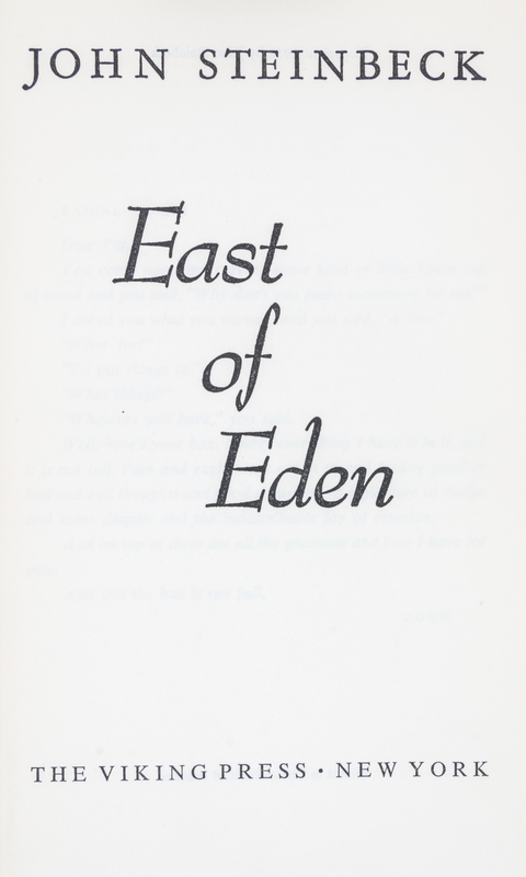 Three first editions, comprising East of Eden, The Wayward Bus and The Moon is Down. New York: Viking Press, 1952, 1947 and 1942. 8vo, publisher's cloth, dust jackets. Second printing of Moon of Down.
