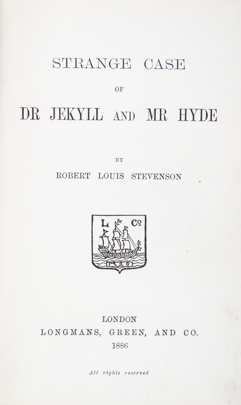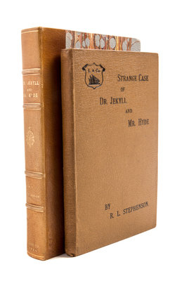 Dr. Jekyll and Mr. Hyde. London: Longmans, Green, 1886.8vo, rebound in mustard cloth with author's name misspelled "Stephenson," custom quarter morocco over marbled paper clamshell case, green endpapers with ivy leaf pattern. First English edition. Light intermittent brown spotting.