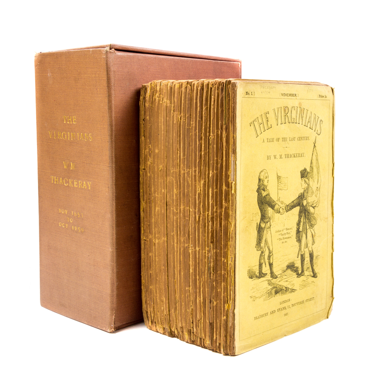 The Virginians. A Tale of the Last Century. London: Bradbury and Evans, 1857-59.24 parts, publishers yellow printed wraps, housed in a red cloth-backed folding case. First edition, in original parts, with engraved plates.