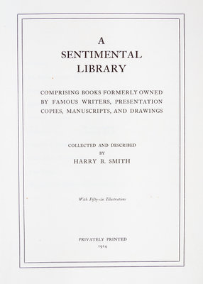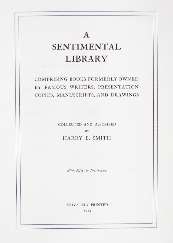 A Sentimental Library. [s.l.]: Privately Printed, 1914.4to, original vellum-backed boards. First edition. Presentation copy, inscribed to William F. Gable. Includes nine of Gable's bookplates; his collection was sold by the American Art Assoc. in 1923-1925. [Together with:] Amenities of Book Collecting by A. Edward Newton. Boston, 1918; Adventures in Americana. By Frederick Woodward Skiff. Portland, OR, 1935. One of 800, signed. (3 total)