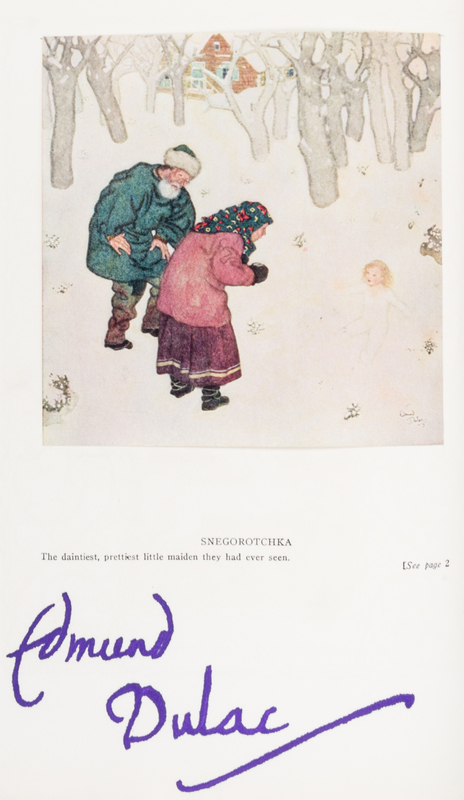 Dulac's Fairy-Book: Fairy Tales of the Allied Nations. New York: George H. Doran Company, n.d.4to, publisher's black cloth with gilt-decorated pictorial pastedown, decorative endpapers. First trade edition, signed by Dulac in purple ink below the frontispiece. A touch of wear to boards edges of the spine and some light scratches to cover.