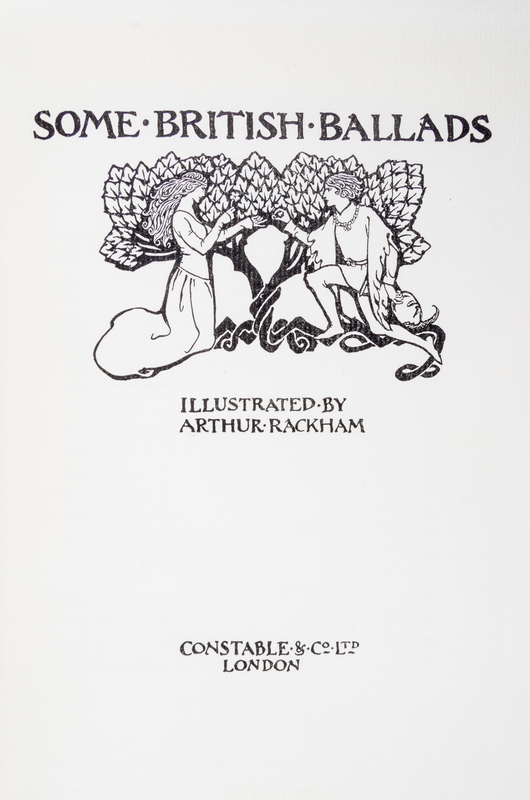 Some British Ballads. London: Constable and Company, n.d.4to, publisher's vellum-backed gilt boards. Complete with 16 color plates by Rackham. Limited edition, number 377 of 575 copies signed. Vellum soiled; rubbing to boards.