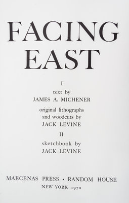 Facing East. New York: Maecenas Press/Random House, 1970.Portfolio, contents loose as issued in original cloth-backed clamshell case. Limited edition, number 1050 of 2,500 copies signed by the artist and author on the limitation page and on the interior of the clamshell case.