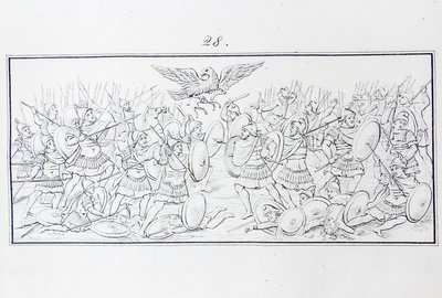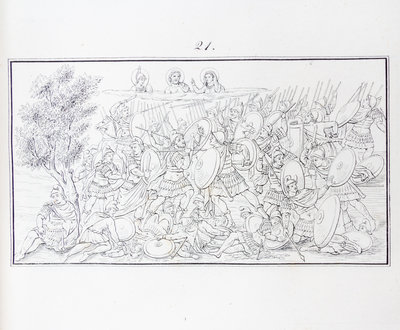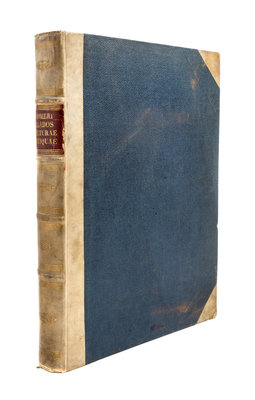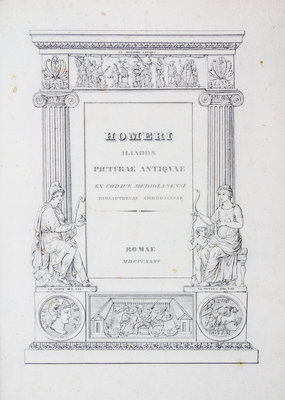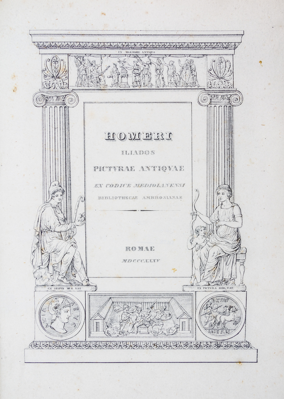 Homeri Iliados picturae antiquae ex Codice Mediolanensi [and] Viriilii Picturae Antiquae ex Codicibus Vaticanis. Rome: s.n., 1835.4to, 3/4 vellum, gilt-lettered spine label. First edition, complete with title pages and 125 plates total. Minor darkening of spine and minor shelfwear; minor intermittent foxing throughout text and plates; ex-library stamp and bookplate.