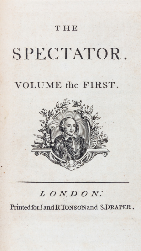 The Spectator. London: Printed for J. and R. Tonson and S. Draper, n.d.8 vols. 12mo, contemporary tree calf, engravings. Wear to boards; hinges starting.